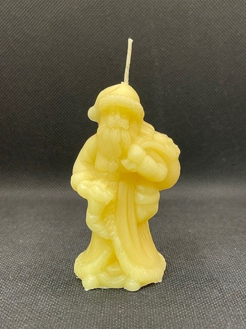 Pure Beeswax Candle Santa Claus - minimum 36g - Standing 8cm in height. Clean burning with a beautiful white light.